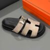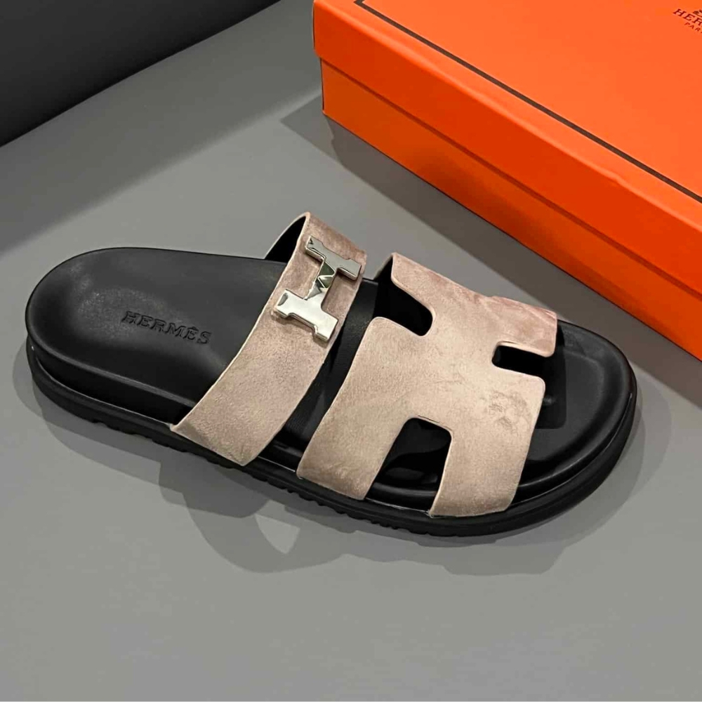 Hermes Chypre Sandal Suede H Logo Silver Hardware Light Brown