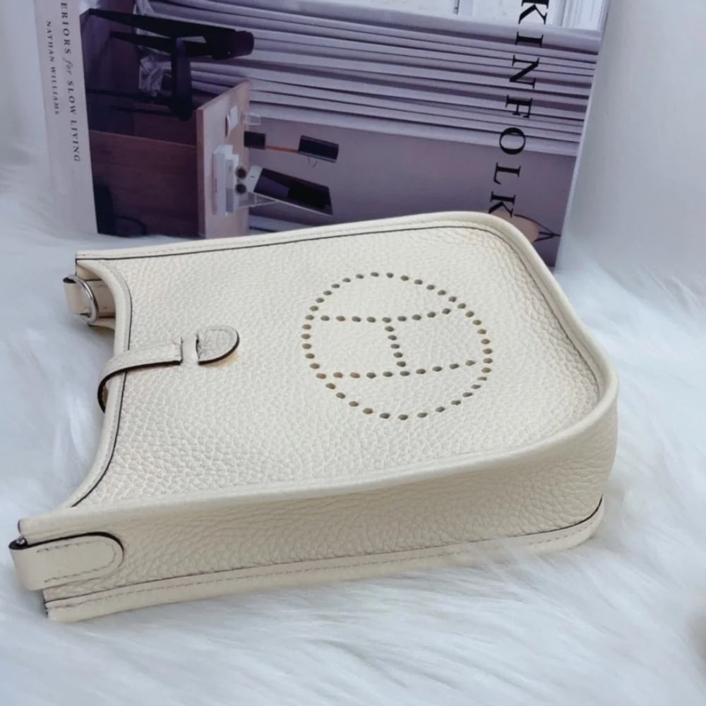 The Hermès Evelyne Amazone in White embodies timeless sophistication with its sleek silhouette and iconic perforated “H.” A statement of effortless luxury, it elevates every ensemble with refined elegance and modern prestige.