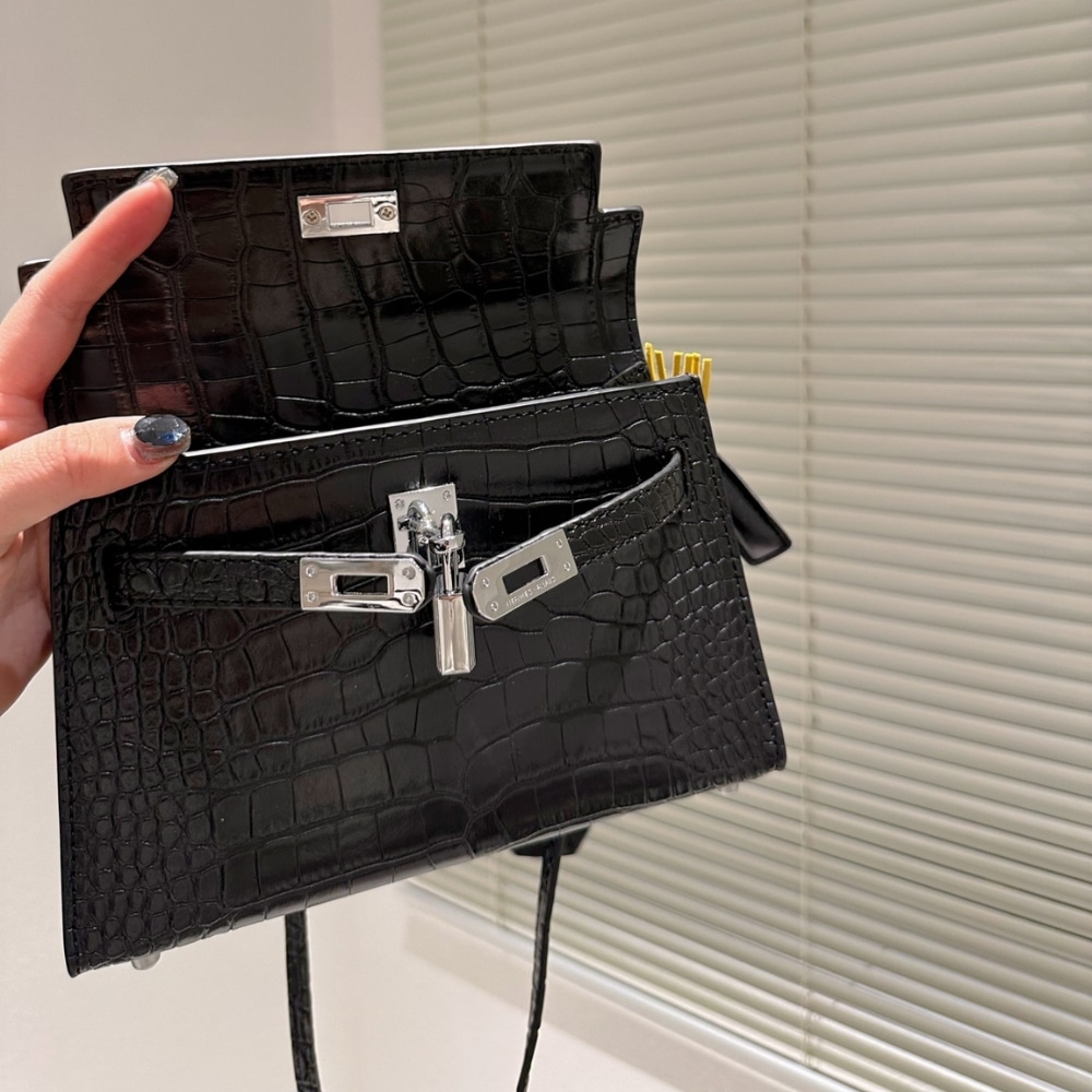 Hermes Kelly Mini Handbag Matte Alligator Black
