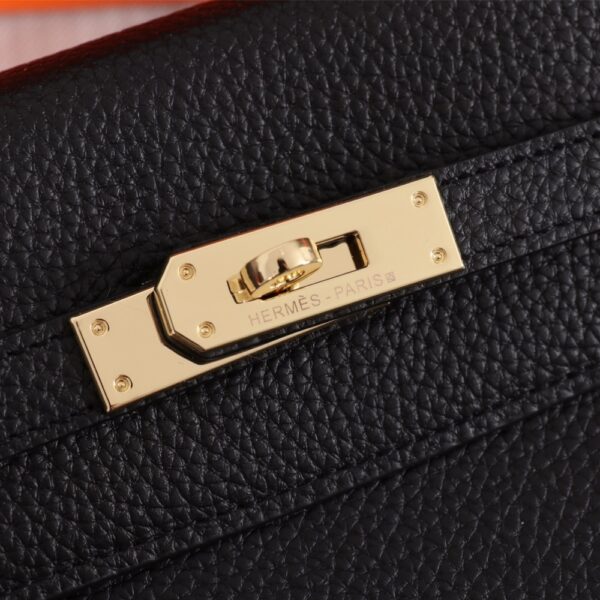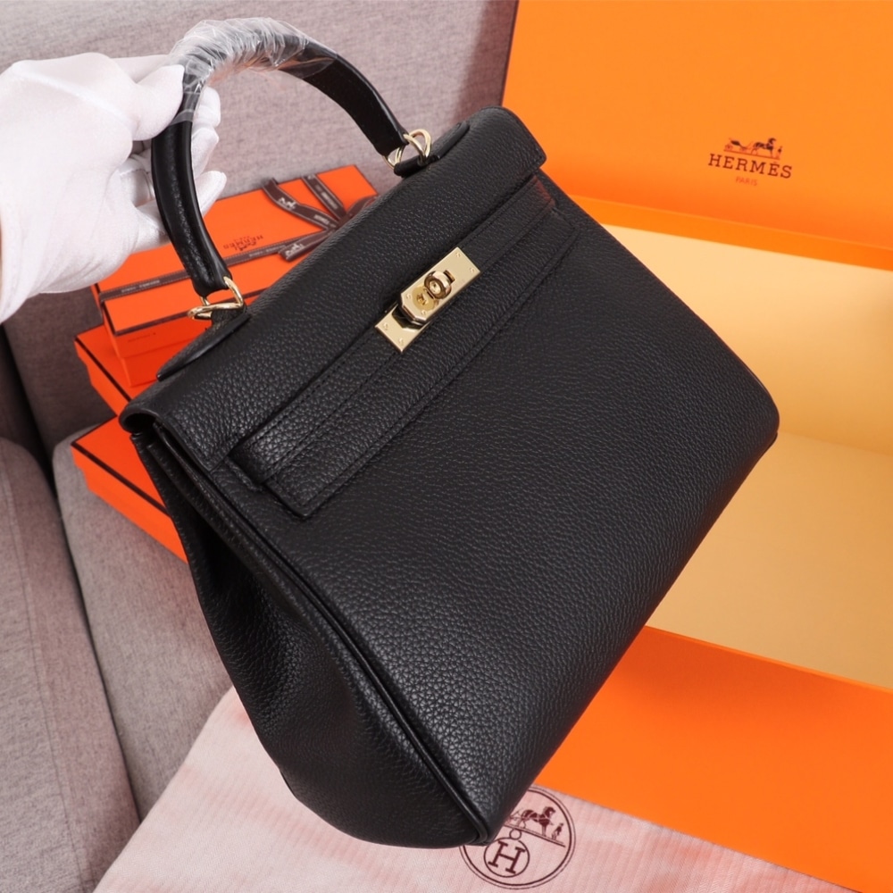 The Hermès Kelly Togo Handbag in Black radiates timeless sophistication with its sleek silhouette and iconic design lines. A symbol of power and elegance, it elevates every moment with an aura of prestige and effortless style.