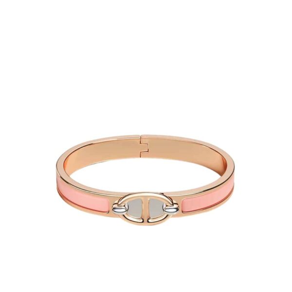 Hermes Mini Clic Anchor Chain Bracelet Rose Gold Tone With Light Pink