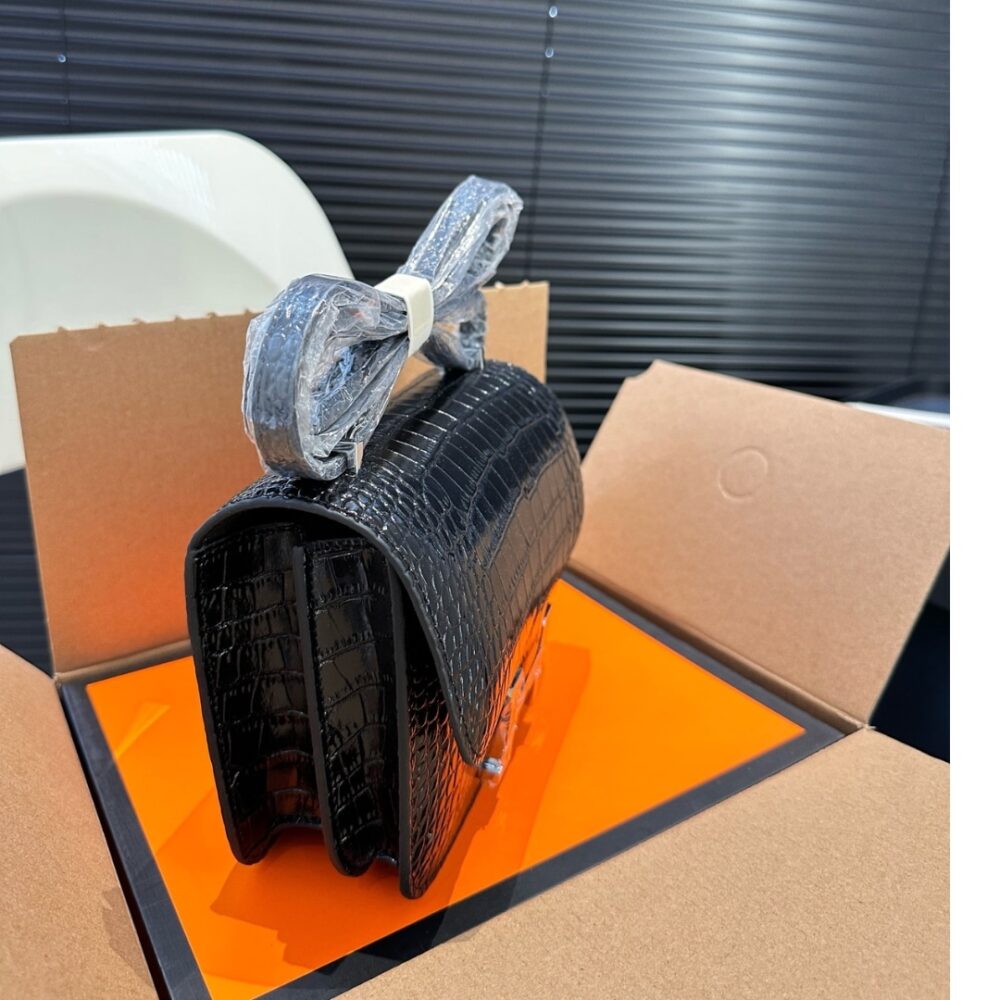 Hermes Mini Constance 19 Shiny Alligator Palladium Hardware Black