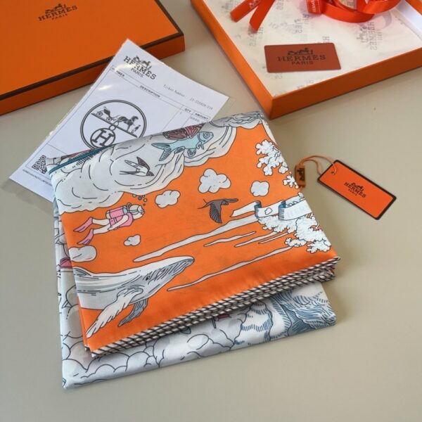 Hermes Sur Mon Nuage Scarf Orange 90Cm