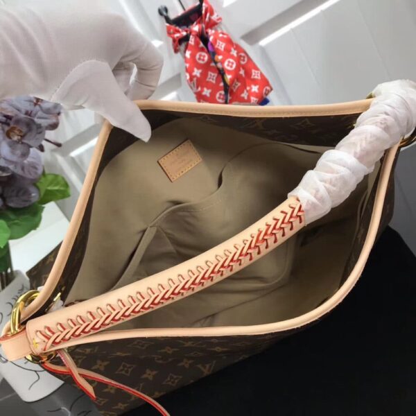 Introducing the Again handbag, a fresh interpretation of the iconic Artsy design that first launched in 2010, now more supple, more iconic, and more meticulously crafted. This edition is rooted in LV DNA, paying tribute to the House’s savoir-faire with a classic Monogram canvas base, a hand-braided handle, and a customizable name tag. It is generously sized to store a laptop and opens to reveal several pockets. The gold-tone hook can be used to attach playful charms.