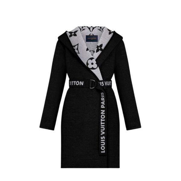 Louis Vuitton Belted Double Sided Hooded Wrap Coat Black And Gray