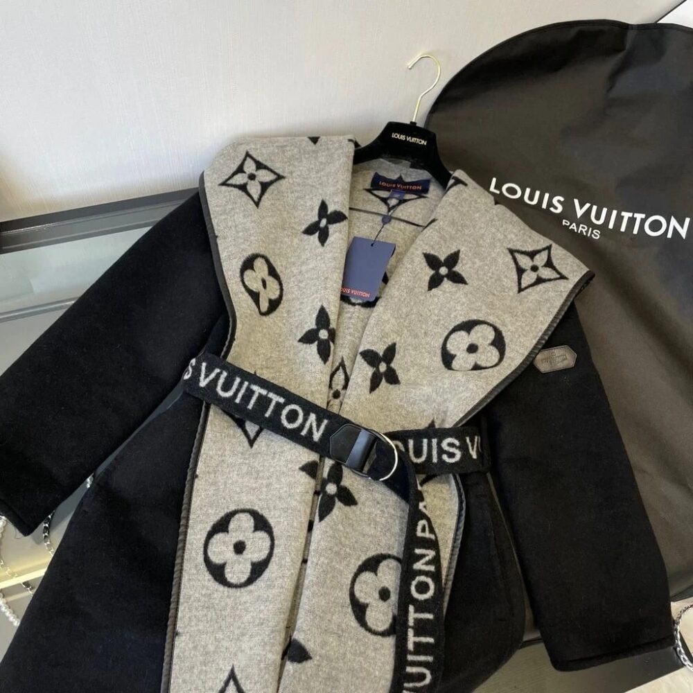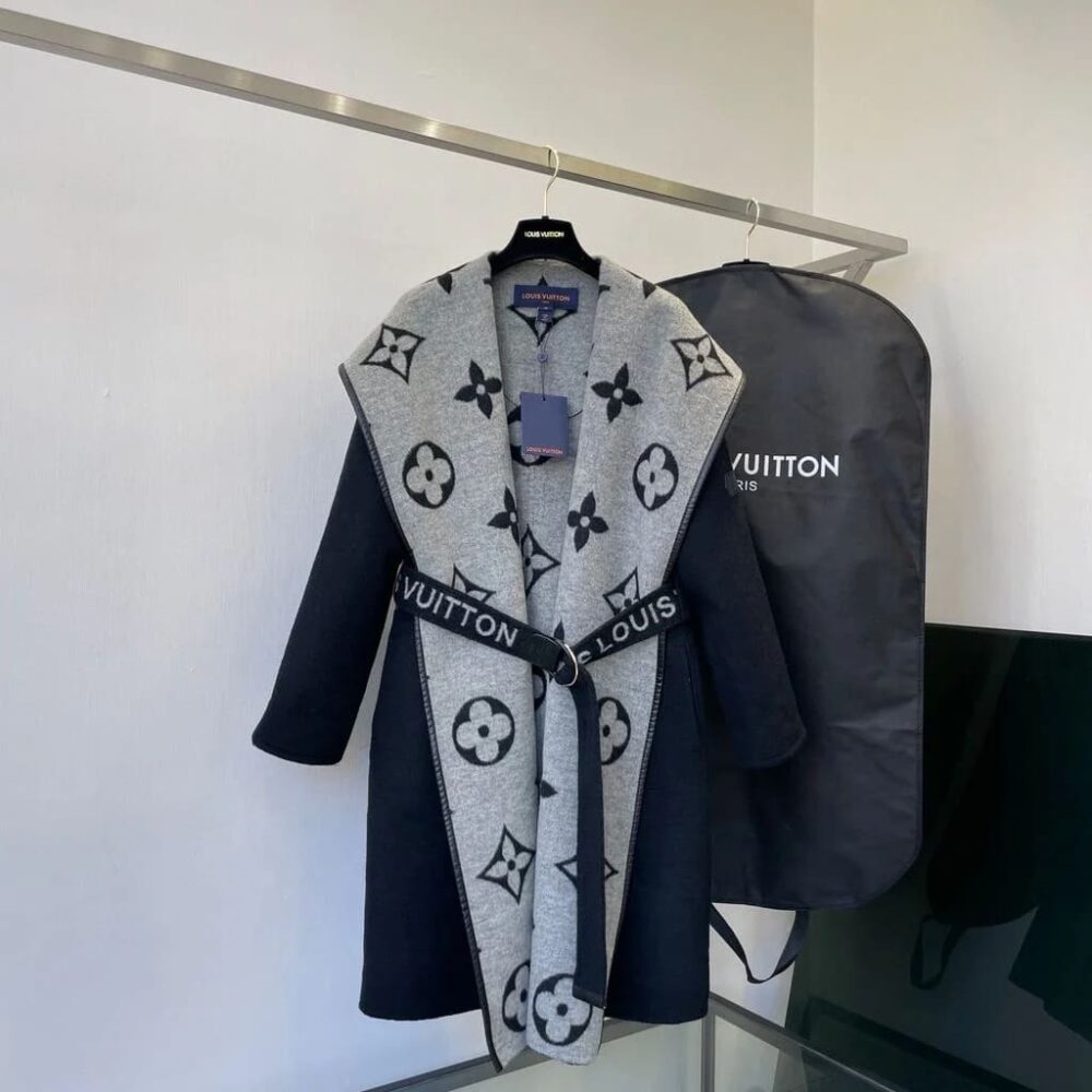 Louis Vuitton Belted Double Sided Hooded Wrap Coat Black And Gray