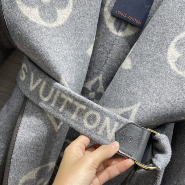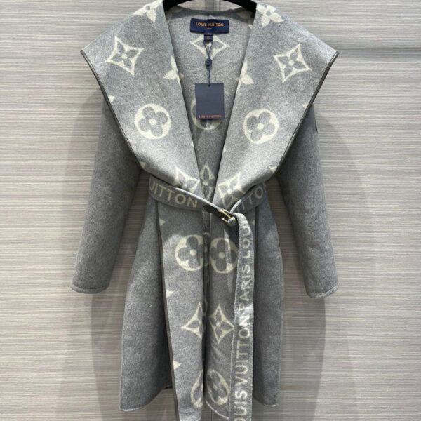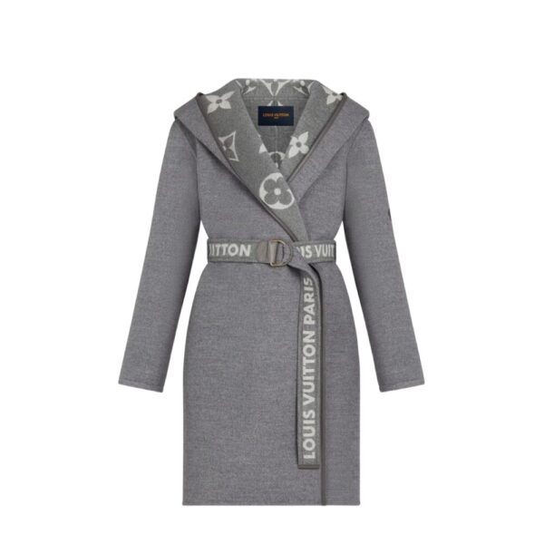 Louis Vuitton Belted Double Sided Hooded Wrap Coat Gray