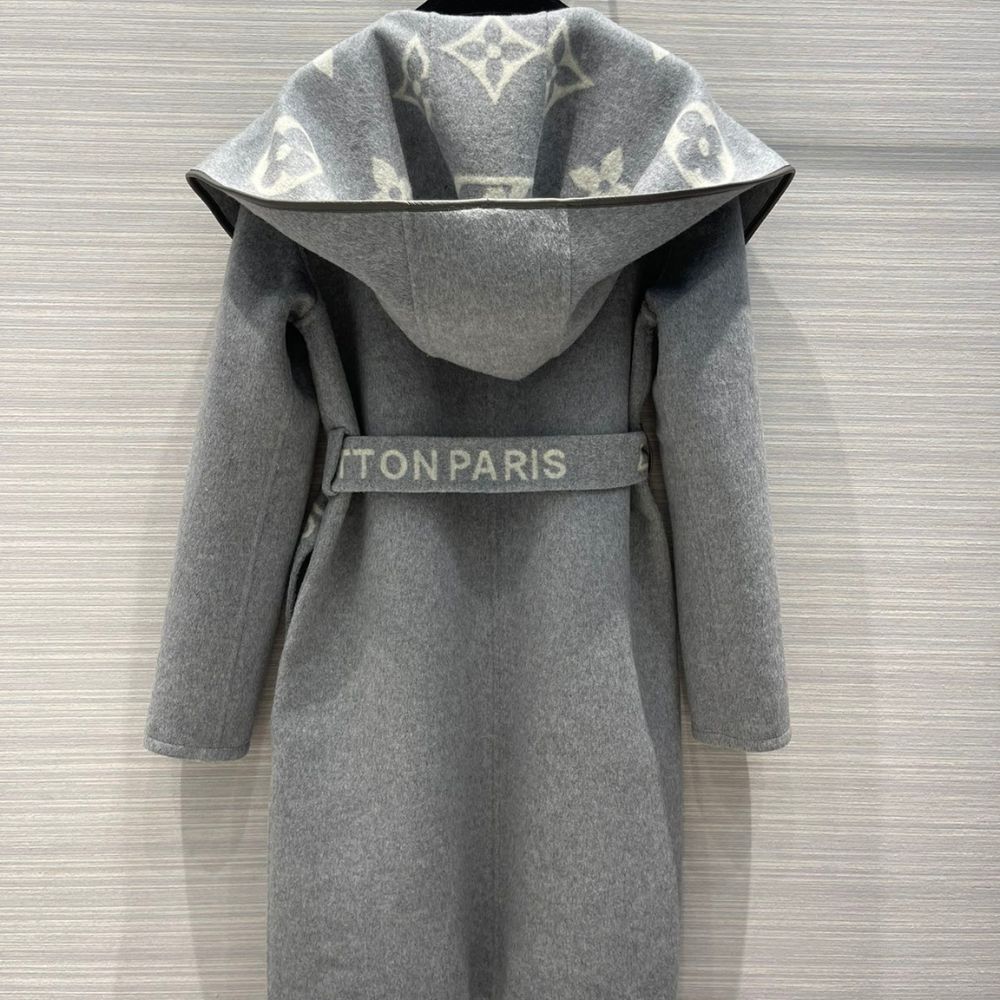 Louis Vuitton Belted Double Sided Hooded Wrap Coat Gray