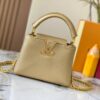 This special edition of the Capucines Nano Flower Crown comes in soft, which is complemented by crystal-encrusted hardware. The bag’s iconic LV Initials signature is highlighted by sparkling rhinestones. This beautifully crafted piece has a top handle and a removable, adjustable shoulder strap offering different carry options.