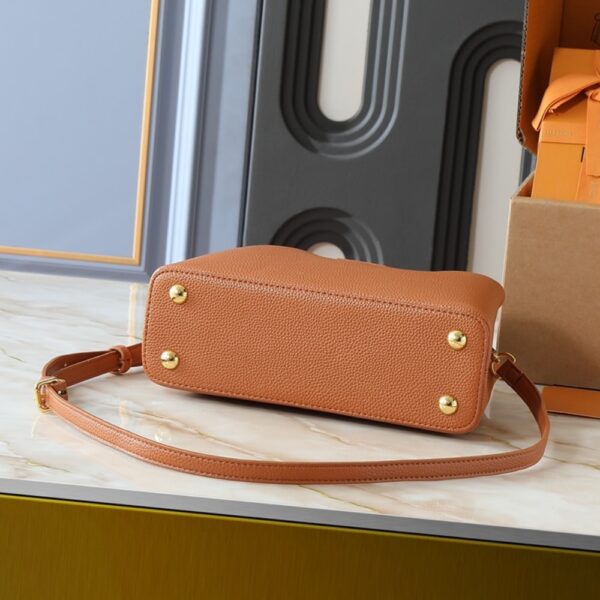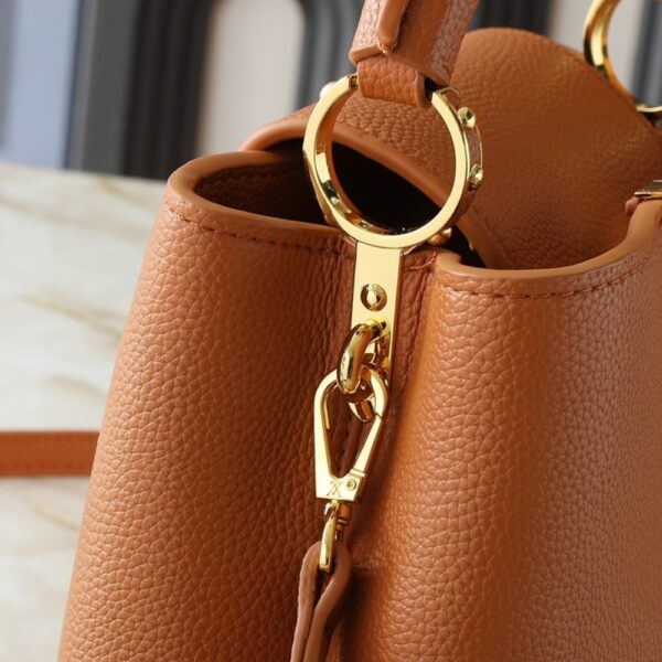 First launched in 2013, the iconic Capucines bag is named after the Parisian avenue where Louis Vuitton opened its first store in 1854. This version of the Capucines BB is crafted from grained leather with many of the iconic bag’s signature touches, including the LV logo wrapped in leather, a jewel-like handle loop, and an intricate Monogram flower-shaped flap. Timelessly elegant, the bag can be carried as a clutch or worn crossbody thanks to the detachable strap.