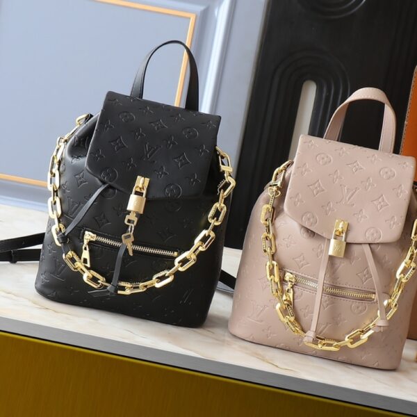 This lightweight Coussin Backpack Mini is crafted from leather adorned with the Maison’s iconic Monogram motif and finished with a removable Coussin chain. The gold-tone LV lock secures your everyday essentials. Featuring a compact size, this model can be worn as a backpack, over the shoulder, or carried by hand.