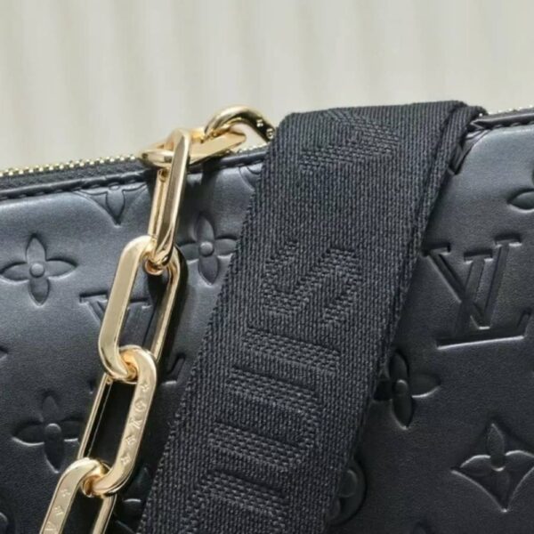 The most eye-catching bag of the Spring-Summer 2021 collection, the Coussin MM handbag is fashioned from puffy, embossed with a Monogram pattern. Voluminous, soft and supple, the bag almost feels like a pillow. An adjustable leather strap allows for shoulder and cross-body carry, while the new Edge Chain invites fashionable under-the-arm styling.