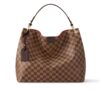 The Graceful MM hobo in elegant Damier Ebene canvas is an extra-roomy yet lightweight bag to carry every day. Natural leather detailing and shiny gold-tone hardware add a refined, signature touch. The body-friendly design combines with a supple, flat handle for stylish and comfortable over-the-shoulder wear. The magnetic closure and zipped inside pocket keep belongings secure.