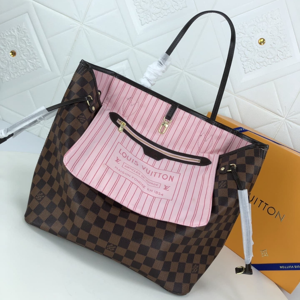 Louis Vuitton Damier Ebene Neverfull MM Brown And Light Pink