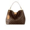The classic Monogram Canvas has been Louis Vuitton’s trademark design since it was first introduced in 1896. The graphic symbols, including the quatrefoils and flowers, as well as the LV Monogram were used to prevent counterfeiting in the early days when it was first patented. Made of coated canvas, the Monogram’s traditional look is also endured by its durability.