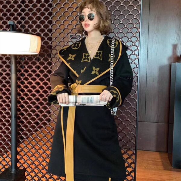 Louis Vuitton Hooded Wrap Coat Monogram Wool In Black