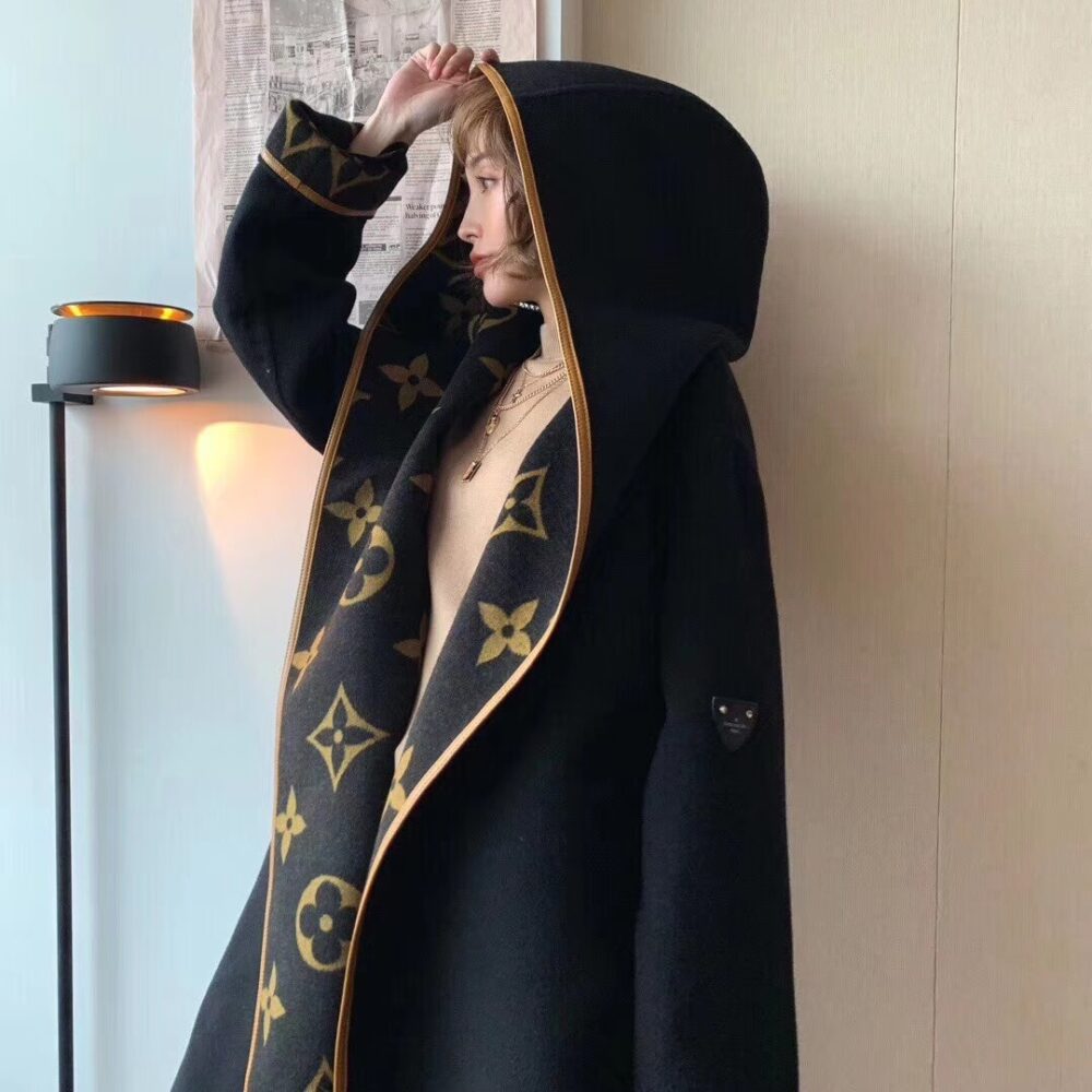 Louis Vuitton Hooded Wrap Coat Monogram Wool In Black