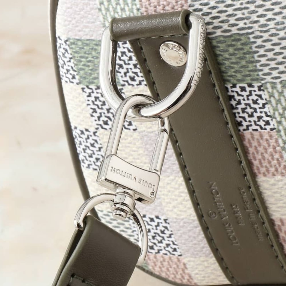 This Keepall Bandoulière 25 city bag is fashioned from beige Damoflage canvas, with its pixelated treatment of the Damier checkerboard. Trimmed with khaki-color leather trim, it features an exquisitely crafted LV charm. Versatile, the bag has two rolled leather top handles for hand carry and a removable and adjustable strap for shoulder or cross-body wear.