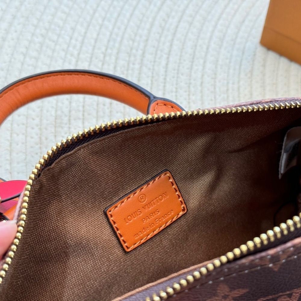 The Keepall Bandoulière 25 takes on a western feel in Pharrell Williams’ new Monogram Dust canvas, with its faded treatment of the iconic Monogram pattern. The two top handles, removable shoulder strap. This small city bag can fit a phone, wallet, and other smaller items.