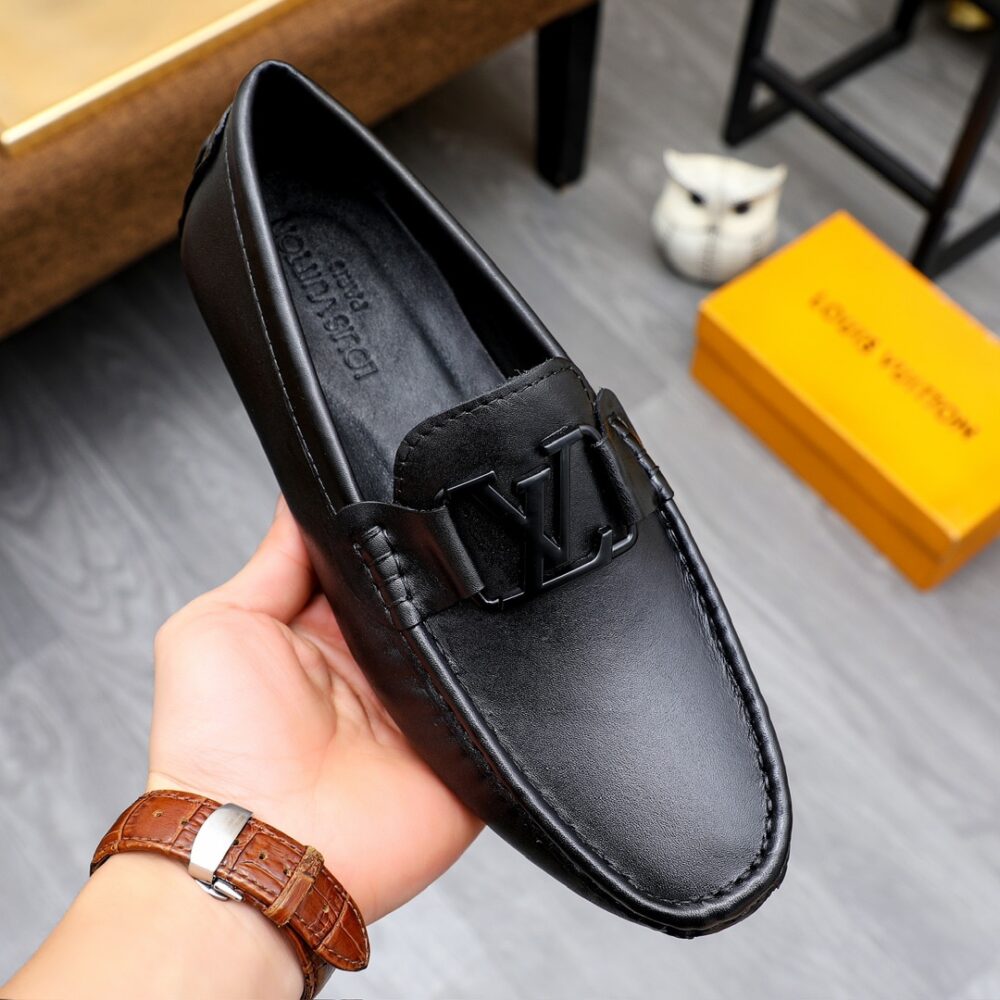 Louis Vuitton Loafer Matte Leather With LV Logo In Black