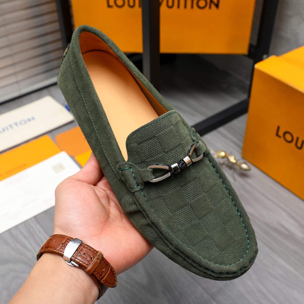 Louis Vuitton LV Damier Suede Leather Loafers In Dark Green