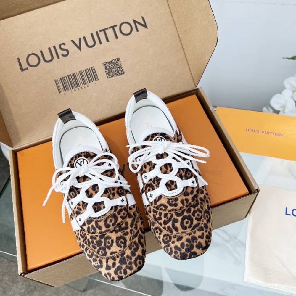 The Louis Vuitton LV Sneakerina Brown exudes bold sophistication with its striking leopard-inspired design and sleek contours. Effortlessly blending comfort and luxury, it elevates your presence with an aura of fearless elegance and timeless prestige.