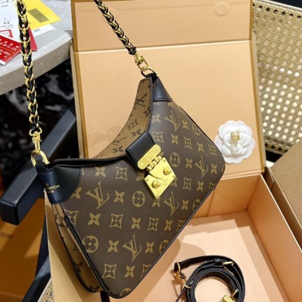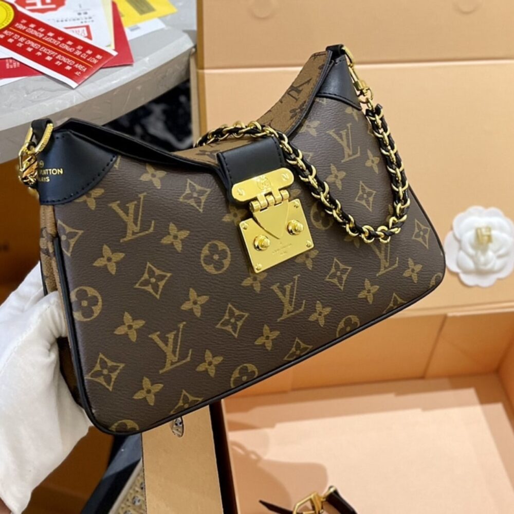Inspired by the Maison’s archives, the casual yet sophisticated LV Twinny is the Monogram handbag of the season. Crafted from a mix of Monogram and Monogram Reverse canvas with black leather trim, it is detailed with an iconic S-lock and a braided chain handle. The bag lends itself to all manner of stylings: from elbow and shoulder to short or long cross-body wear.