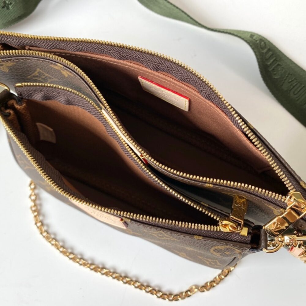 Versatile and effortlessly chic, the Louis Vuitton Multi Pochette Accessoires in Monogram with khaki strap merges iconic elegance with modern functionality. Adorned with gold accents and signature detailing, it embodies the essence of contemporary luxury and refined confidence.
