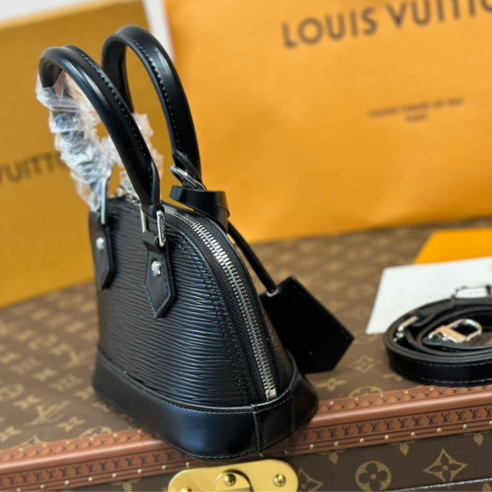 The Nano Alma is a miniature replica of the iconic Alma bag, which is crafted from emblematic Epi grained leather. Though small in size, this bag is big on functionality, with a surprisingly roomy interior that can hold a smartphone, keys, cardholder, travel scent and more. Its two handles and removable, adjustable shoulder strap offer different carry options.