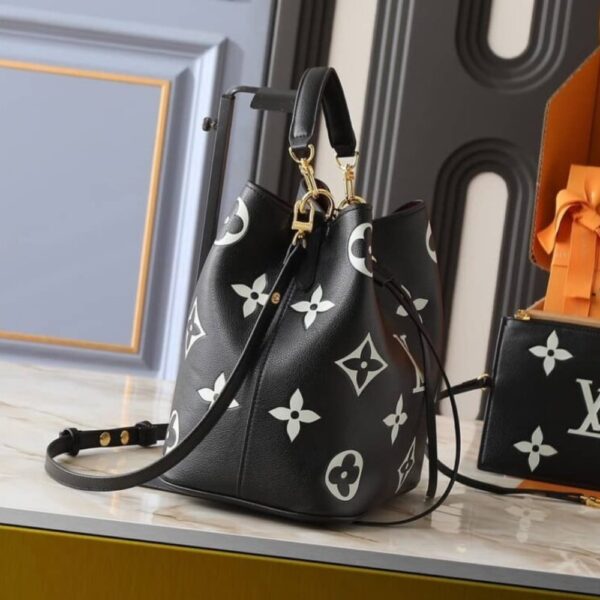The giant LV Initials and Monogram Flowers bring a stylish feel to this NéoNoé MM bucket bag in Monogram Empreinte. The supple leather is first printed then embossed, to enhance the pattern. The NéoNoé can be worn on the shoulder, cross-body, or carried on the elbow or by hand.