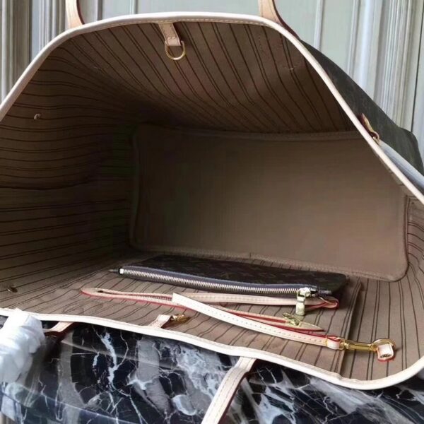 The Neverfull GM bag combines timeless style with heritage details. It is made from supple Monogram Canvas, it is spacious but never bulky. Slim, comfortable handles slide easily over the arm or shoulder.