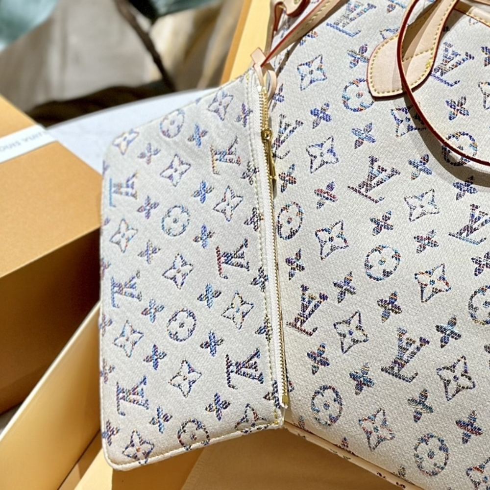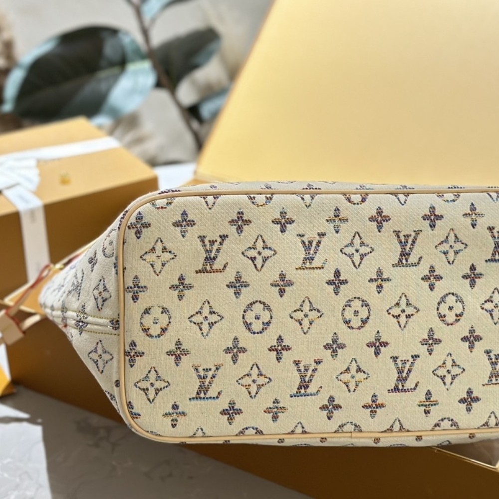 Louis Vuitton Neverfull MM Monogram Jacquard Fabric Multicolor Beige