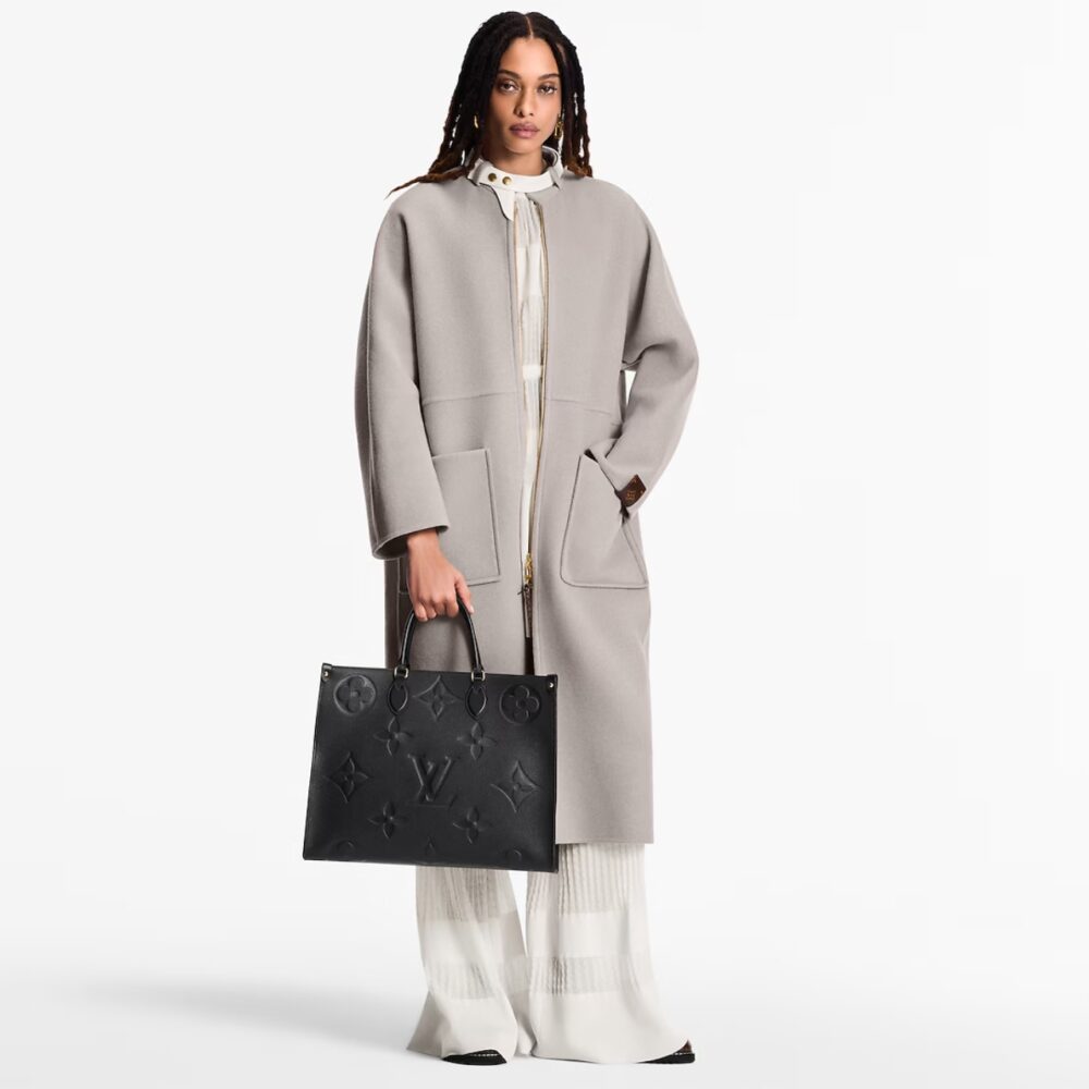 The stylishly oversized OnTheGo GM tote goes from workday to weekend without missing a beat. The bag’s square shape affords plenty of room for stowing office files and a laptop. Versatile, it can be carried by hand or worn over the shoulder on its two long straps.