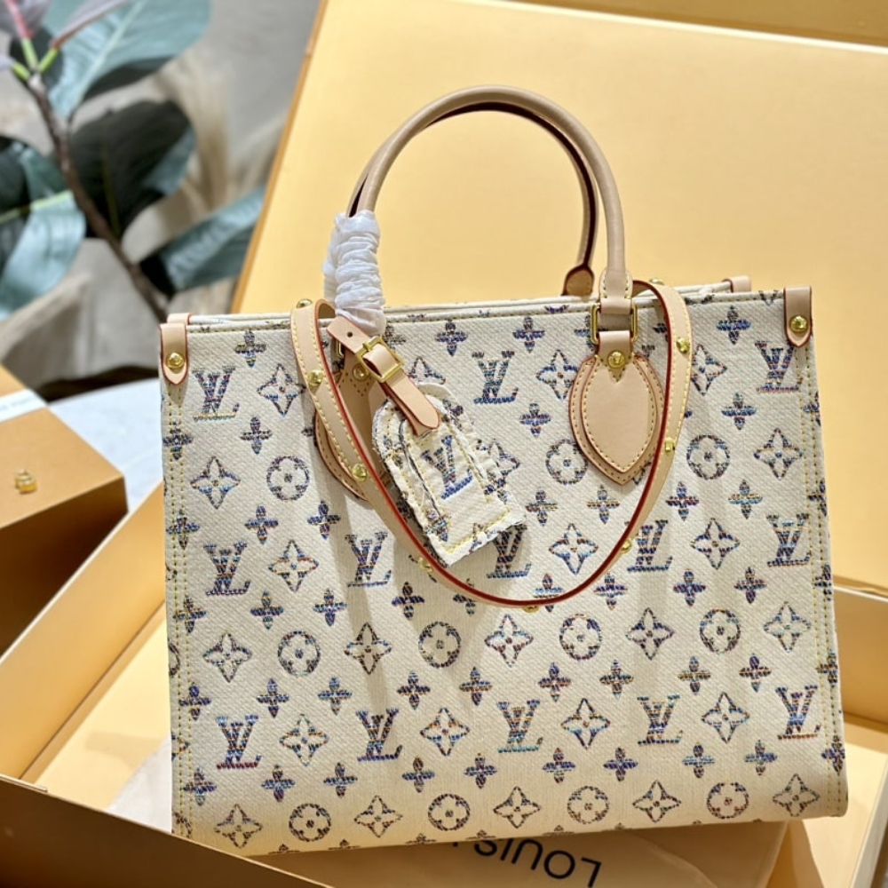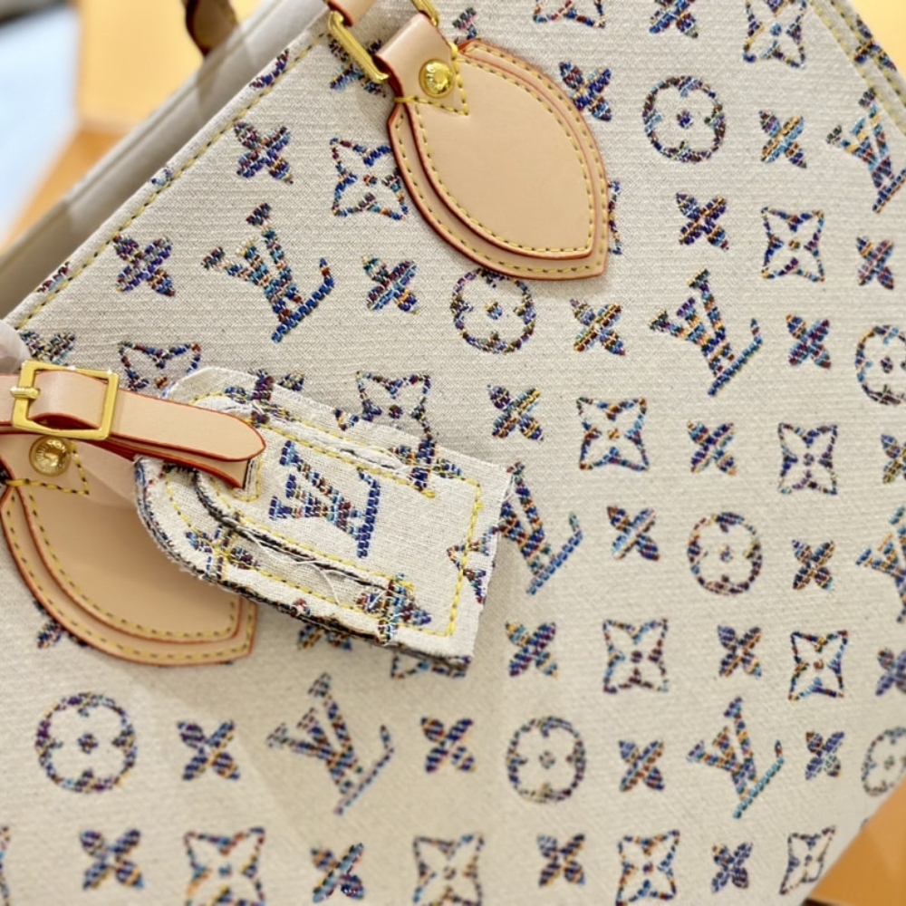 Louis Vuitton Onthego MM Multicolor is crafted from durable jacquard canvas, featuring intricate embroidery and exquisite patterns, these totes exude timeless elegance and sophistication. Designed with fashion-forward colors and floral patterns, these totes add a touch of vibrancy and femininity to your outfit, making a statement wherever you go. Complete with high-quality hardware and a luxurious original hardware purse pouch, our bags combine style and functionality, making them the perfect accessory for modern women.
