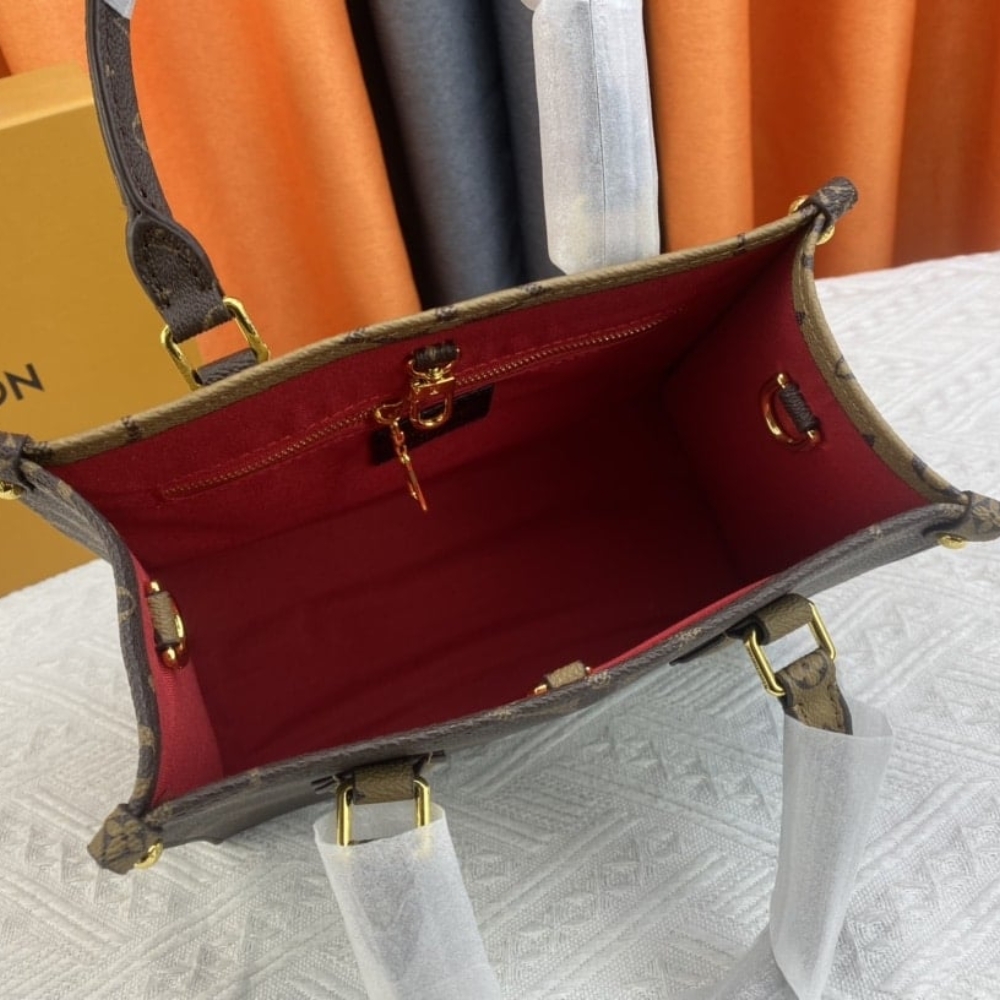 Both fashionable and functional, this OnTheGo PM tote is an ideal everyday companion. Made from a mix of Monogram and Monogram Reverse canvas with the on-trend Giant pattern, it is fitted with Toron handles and a signature woven jacquard strap in contrasting crème beige. The detachable coin purse is perfect for storing change or tiny treasures.