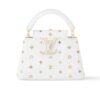 The joyful rainbow palette of Japanese artist Takashi Murakami uplifts this chic Capucines Mini with a fresh signature finish. It is crafted in playful proportions, which is embellished with a multicolored Monogram motif in metallic studs, while the soft pink cowhide lining strikes a subtle contrast inside. A removable braided strap offers versatile carry options, and the compartmented interior organizes daily essentials such as a smartphone and a compact wallet.
