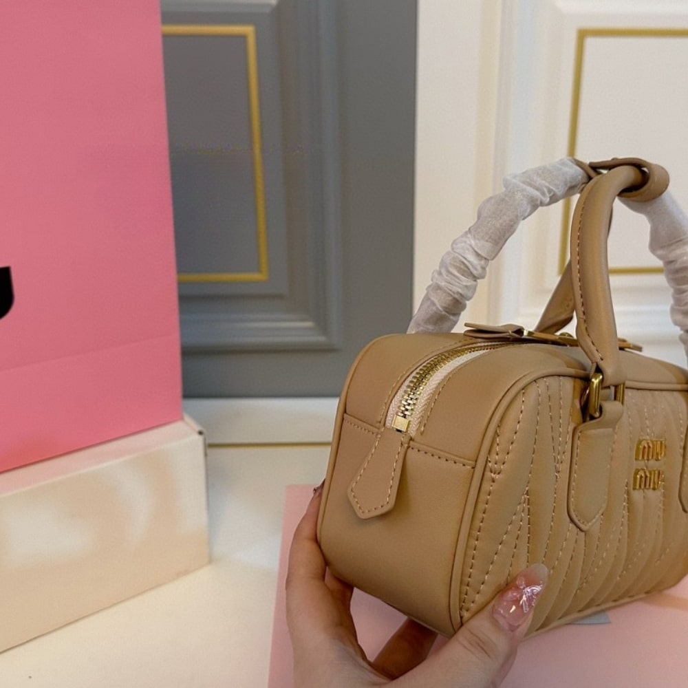 MIUMIU ARCADIE MATELASSÉ NAPPA BAG CARAMEL 23CM 5BB142 AN88 F098L V OON