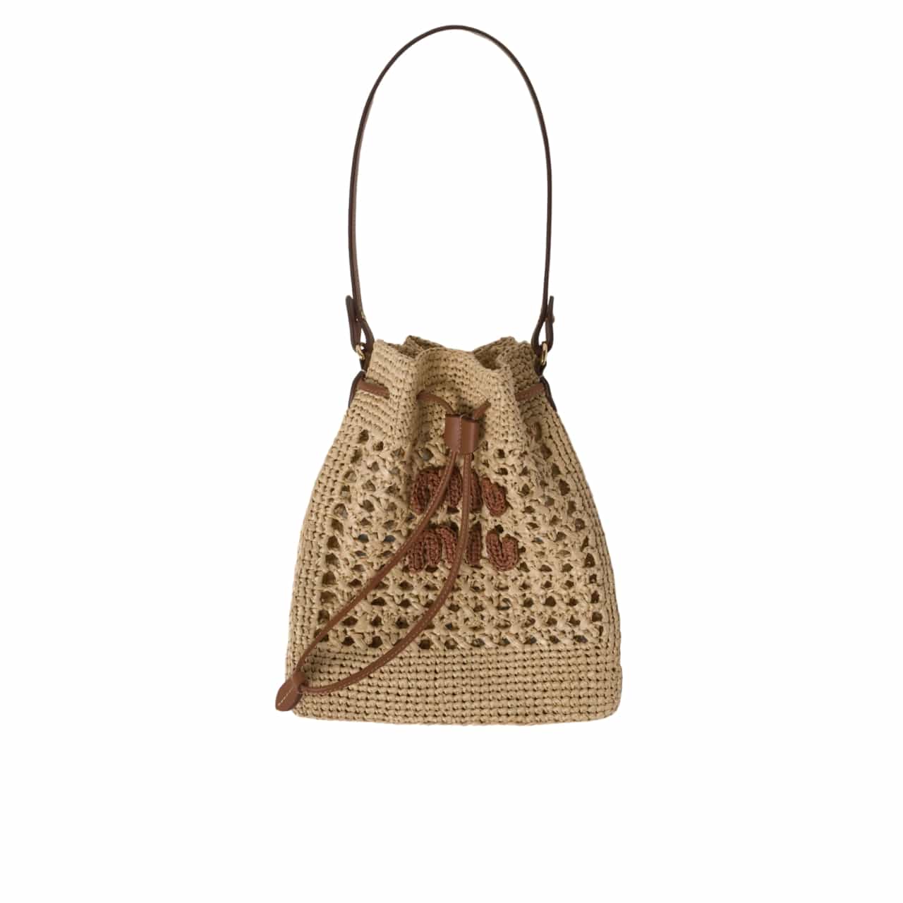 Description 1:1 Replica Bags Measurement: 22 x 25 cm/ 8.7 x 9.8 inches Raffia-effect yarn Drawstring closure Embroidered lettering logo Leather handle Unlined