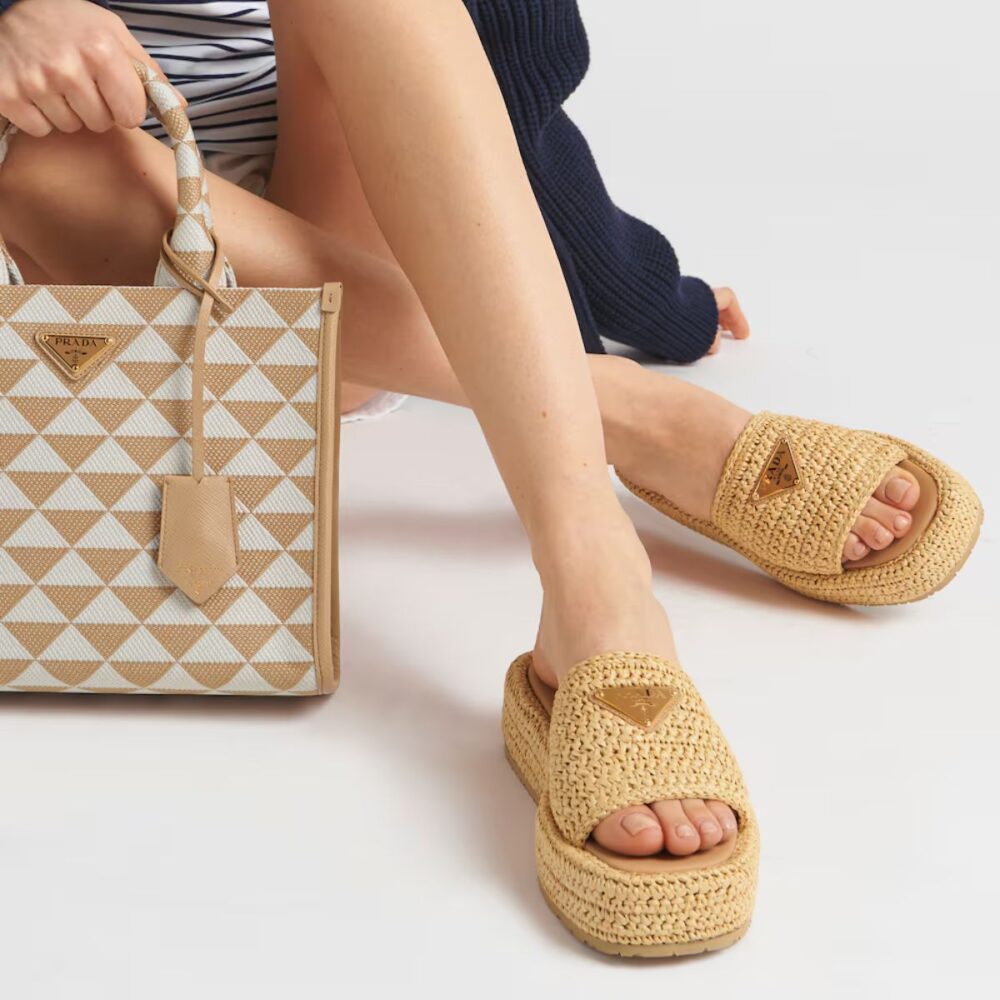 Prada Crochet Flatform Slides Brown