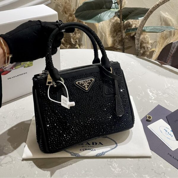 Prada Galleria Satin Mini Bag With Crystals Black