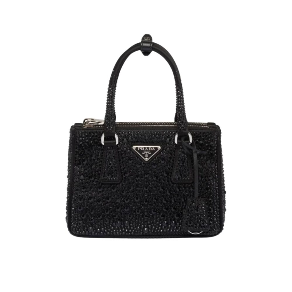 Prada Galleria Satin Mini Bag With Crystals Black
