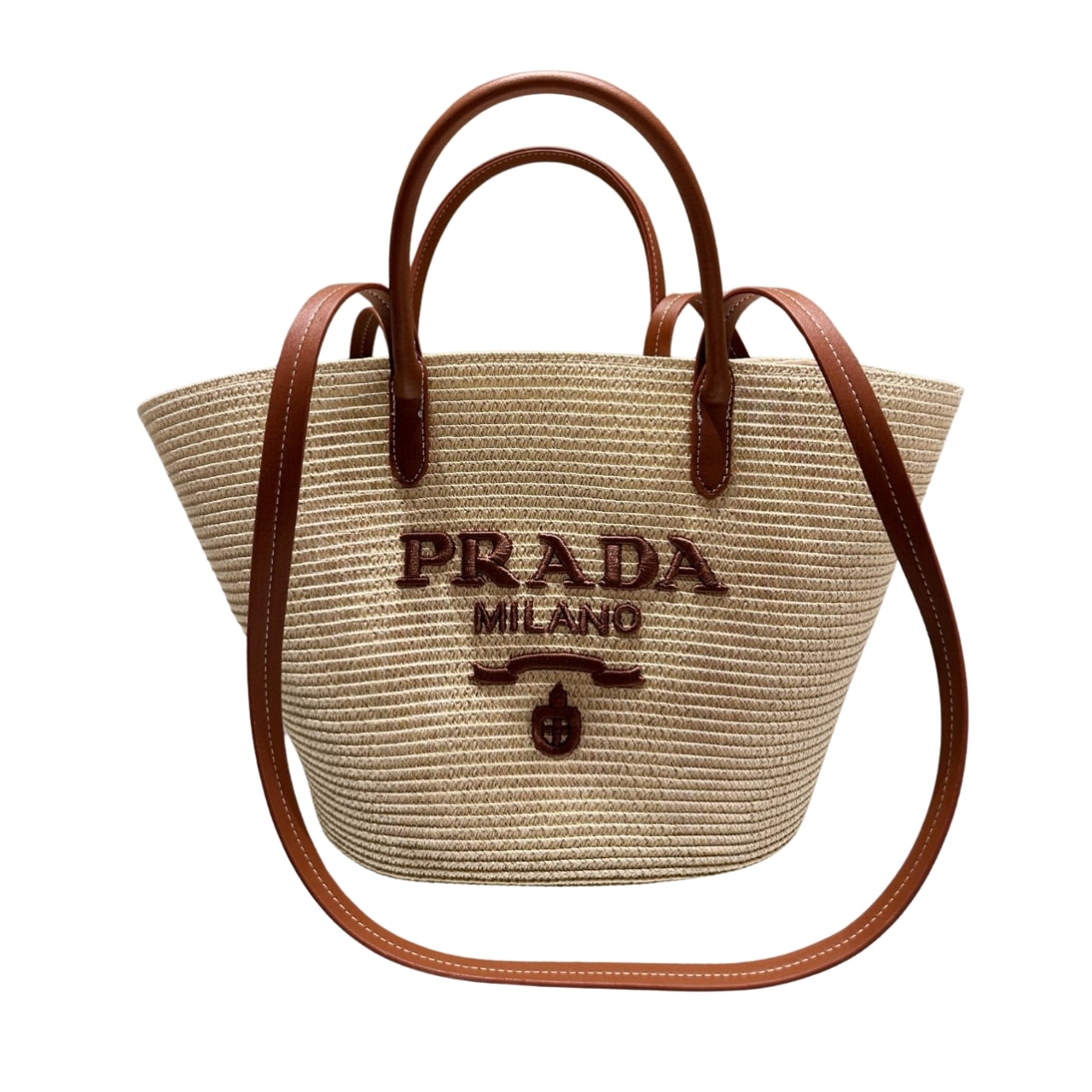 - Double leather handles for use as a handbag or shoulder bag
