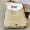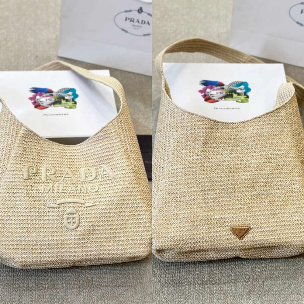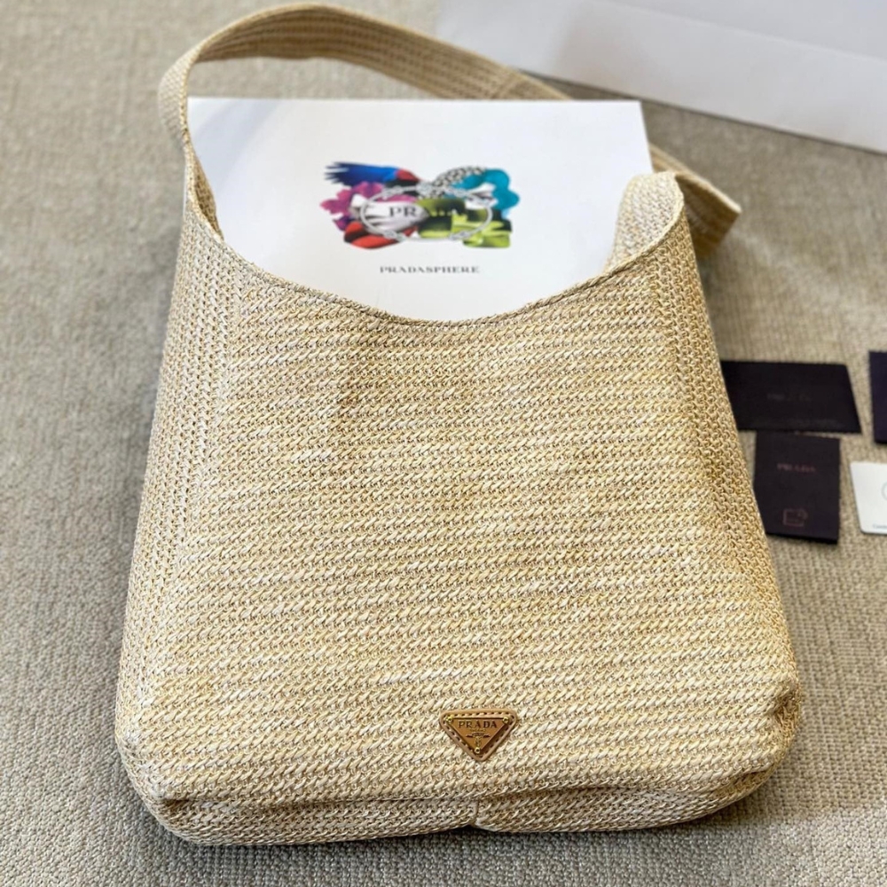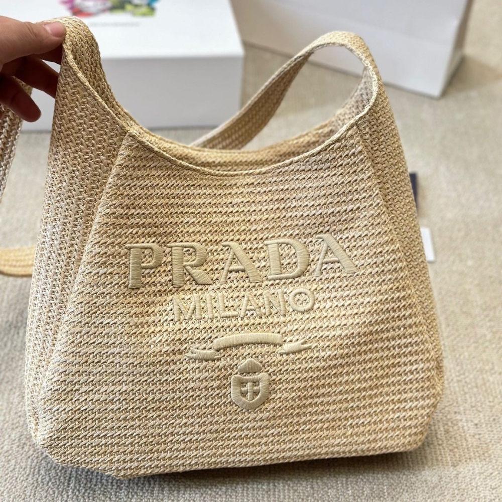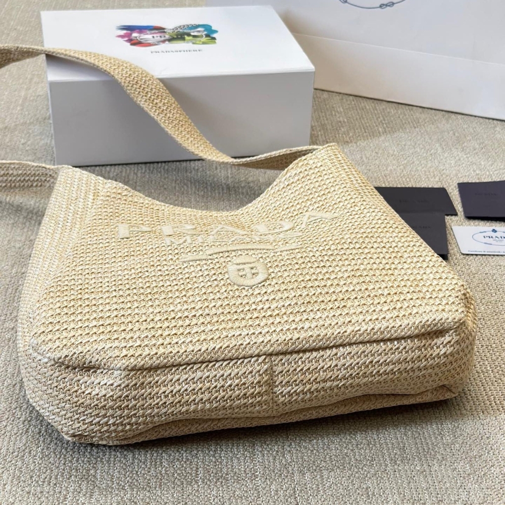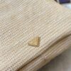 Prada Logo Embossed Raffia Shoulder Bag Beige