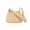 The Prada Logo Embossed Raffia Shoulder Bag in beige exudes effortless sophistication with its chic silhouette and iconic detailing. Designed to embody modern elegance and timeless prestige, it is the perfect statement piece that elevates every ensemble with understated luxury.