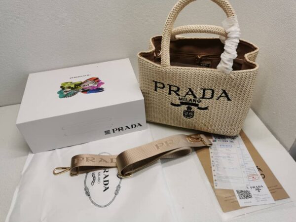 Prada Raffia Tote Bag In Beige