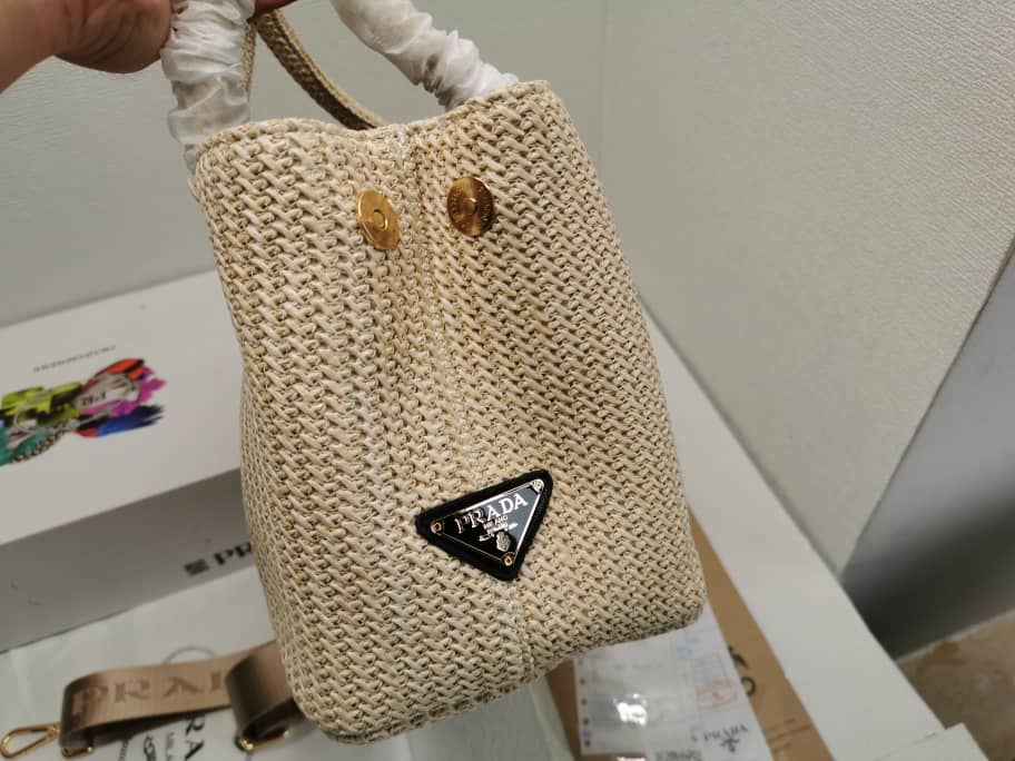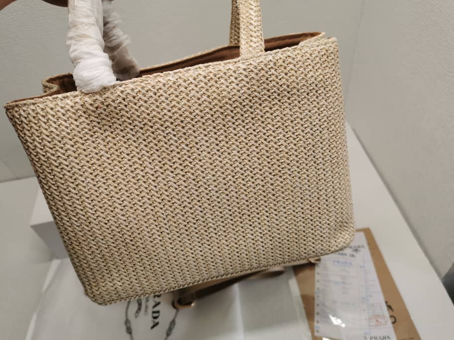 Prada Raffia Tote Bag In Beige