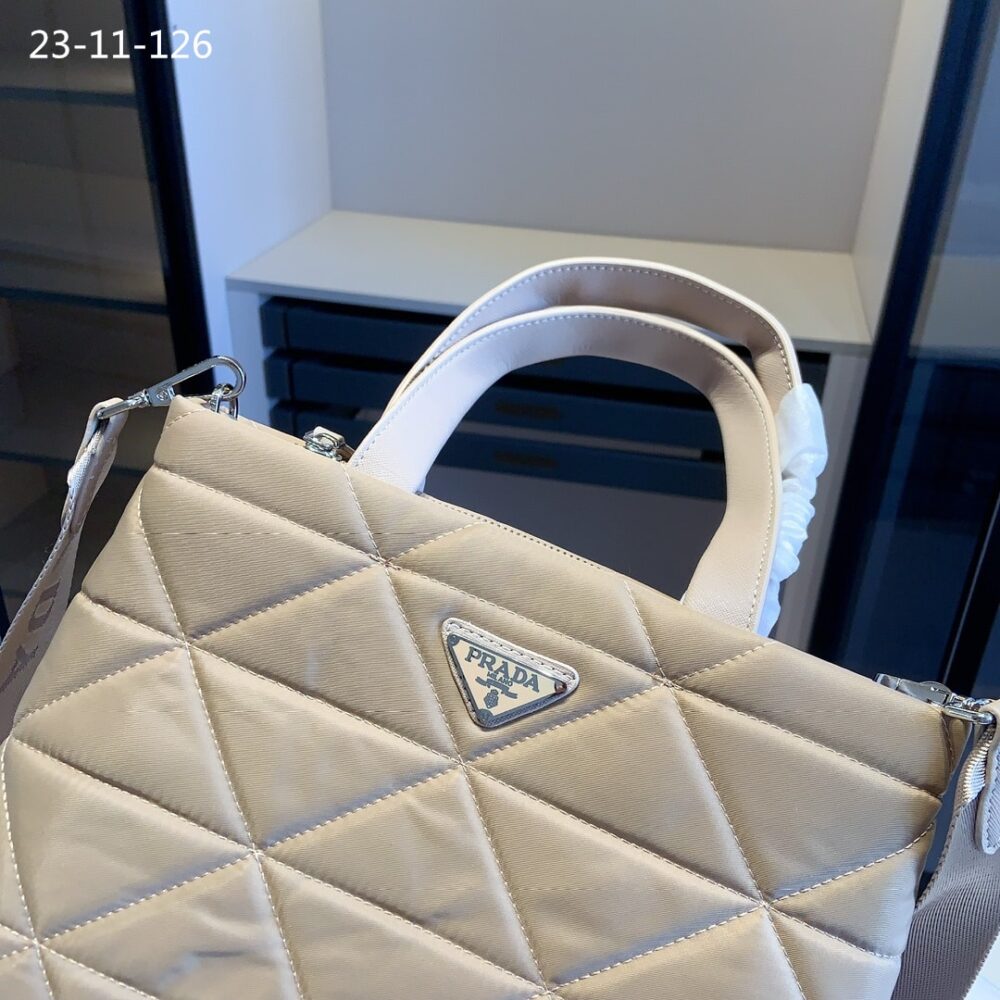 Prada Re Nylon Padded Tote Bag Beige