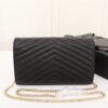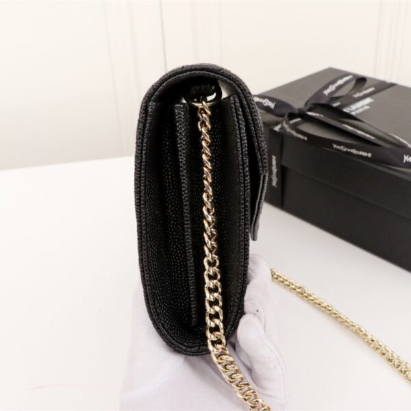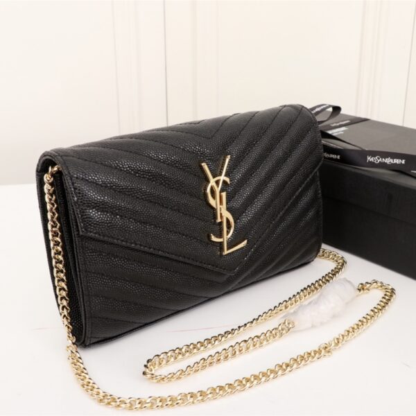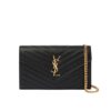 Saint Laurent Cassandre Matelassé Chain Wallet In Grain De Poudre Embossed Black Gold
