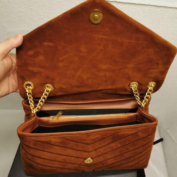 Saint Laurent Cinnamon Loulou Large Chain Bag In Suede Brown