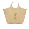 Crafted from beige leather, the Saint Laurent Maxi Icare tote is defined by its oversized silhouette and diamond quilting. Featuring the iconic YSL monogram, this spacious carryall merges practicality with polished Parisian allure—an effortless companion for everyday luxury.